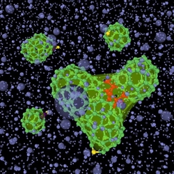 ACE and GRACE can be applied in reactive simulations to follow breaking and forming of chemical bonds. For example, carbon clusters are often formed during combustion of carbon-rich materials at high temperatures and pressures. The nucleation and growth process of molecular fullerenes from gas phase at high pressure and temperature was investigated with ACE potential for carbon. The simulations show a formation of small clusters that gradually coalesce into large fullerenes.